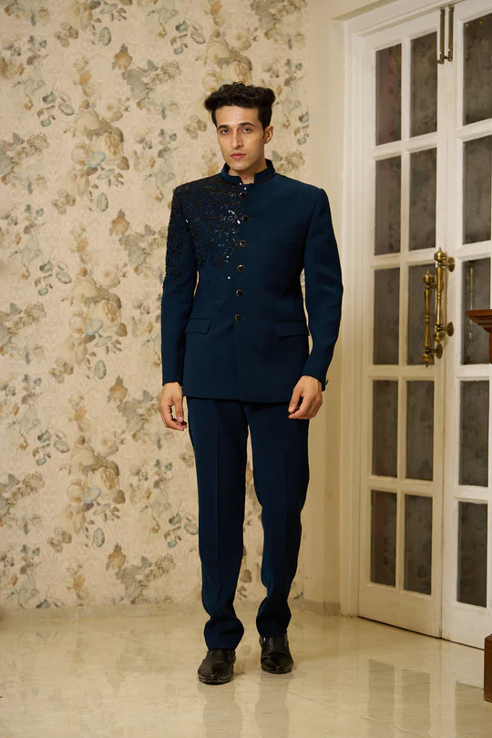 Be the first to review “Blue Jodhpuri Set With Handwork On Shoulder” Cancel reply